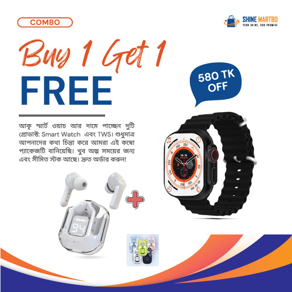 আকৃ স্মার্ট ওয়াচ আর দামে পাচ্ছেন দুটি প্রোডাক্ট: স্মার্ট ওয়াচ এবং TWS। শুধুমাত্র আপনাদের কথা চিন্তা করে আমরা এই কম্বো প্যাকেজটি বানিয়েছি। খুব অল্প সময়ের জন্য এবং সীমিত স্টক আছে। দ্রুত অর্ডার করুন!